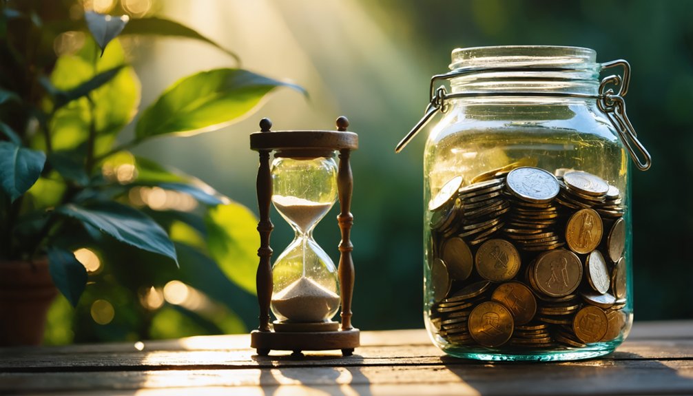 Understanding the benefits of compound interest reveals its potential for significant wealth accumulation. Compound interest earns interest on both the initial principal and previously accrued interest, leading to exponential growth. This concept is vital for long-term investments, as even slight differences in compounding frequency can drastically impact returns. Practical applications include savings accounts and investment strategies like 401(k)s. A thorough grasp of these principles can enhance financial security, and further revelations await those who delve this topic deeply.